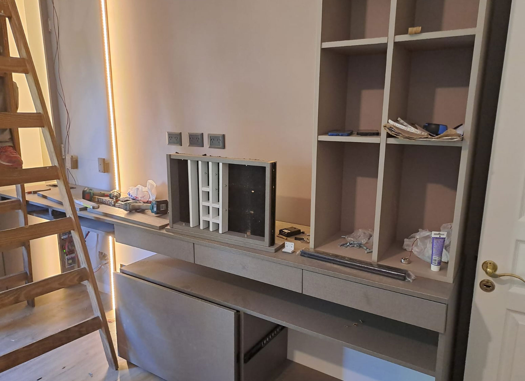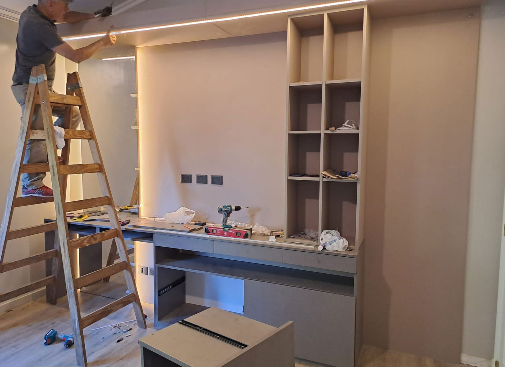Realizamos sobre construcción desde cero todo el amoblamiento de tu cocina o dormitorio para que una vez finalizada la obra con la entrega de la llave ya esté todo listo!