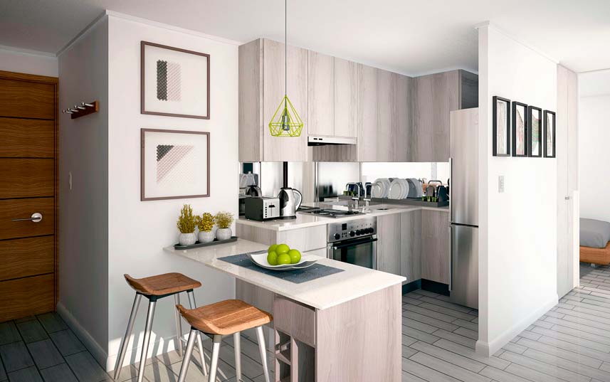 Los accesos están definidos por pórticos con su respectivo lobby de recepción, núcleo de ascensores y escaleras, que dan servicio a las tres o cuatro unidades por piso, según el caso asegurando una excelente atención del residente y visitante.