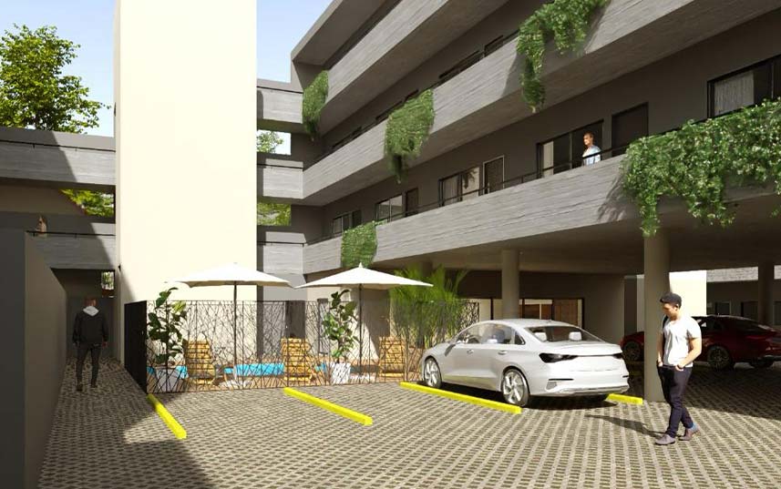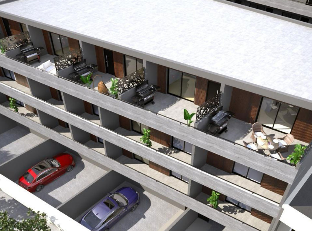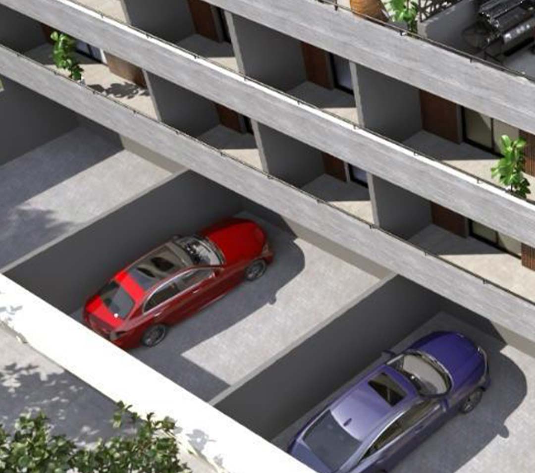 El condominio cuenta con cocheras subterráneas como elemento excepcional entre los desarrollos de la zona, permitiendo al propietario acceder directamente por ascensor desde las cocheras a las unidades.