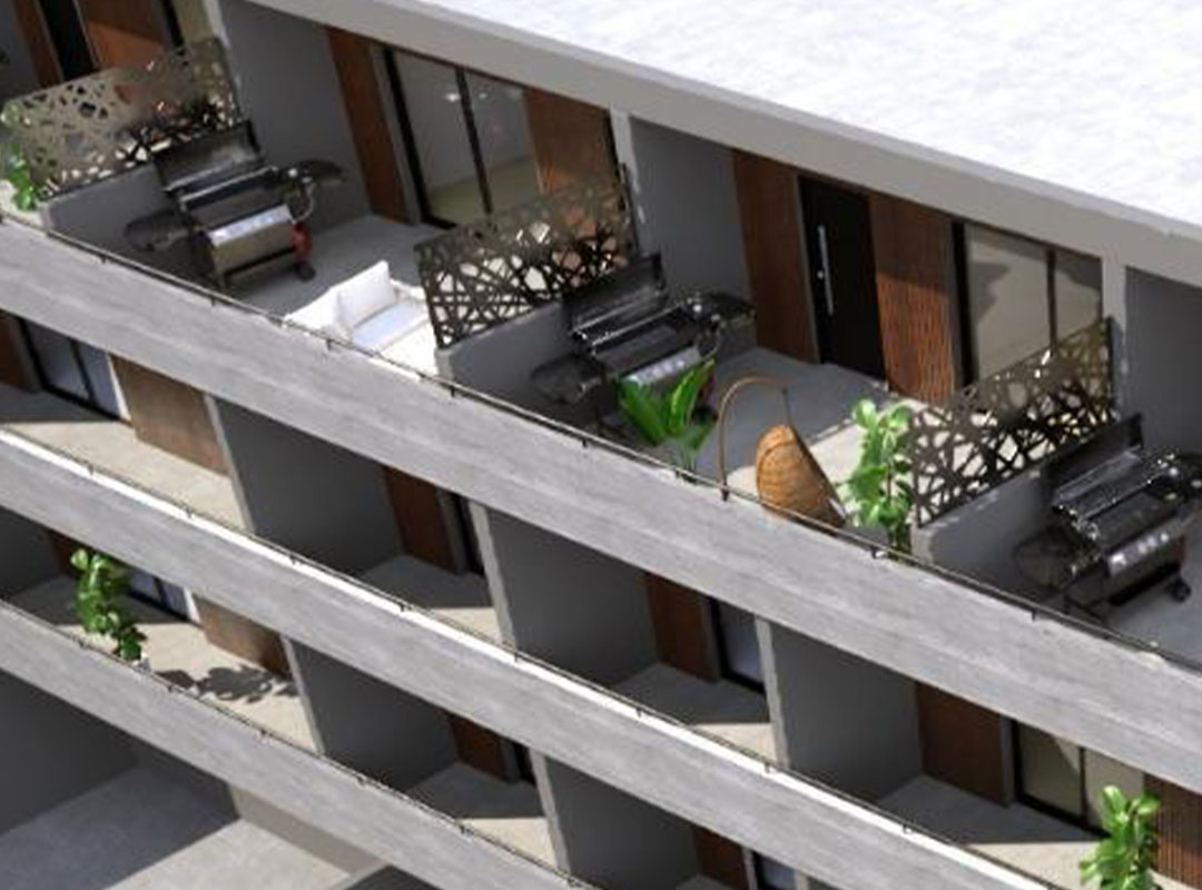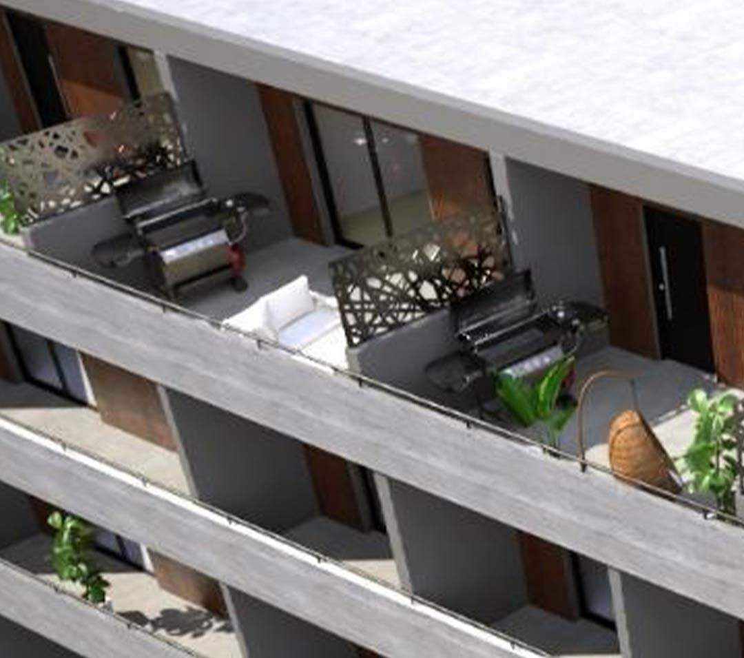 Los accesos están definidos por pórticos con su respectivo lobby de recepción, núcleo de ascensores y escaleras, que dan servicio a las tres o cuatro unidades por piso, según el caso asegurando una excelente atención del residente y visitante.