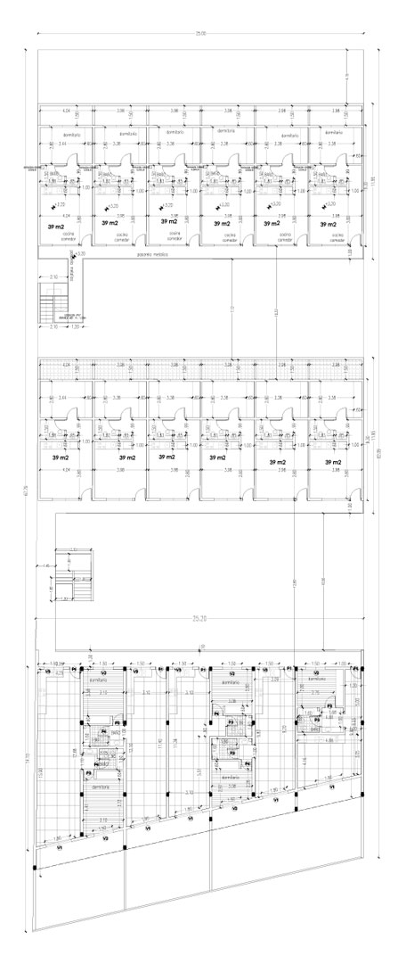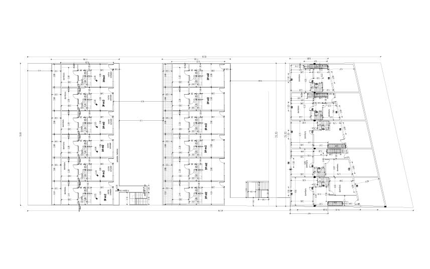 Contempla el loteo del terreno y la construcción de 96 unidades de 118 m2, apareadas en 8 bloques de 12 casas por bloque.